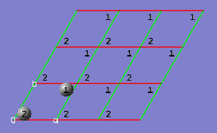 2-15 In the View tab of the PBC dialog, show three cells along both the "a" and "b" axes by selecting 3 from the corresponding spin boxes in the Cell Replication section. By default, the contents of replicate unit cells are shown in Low Layer format.