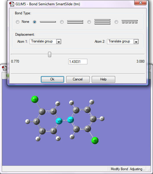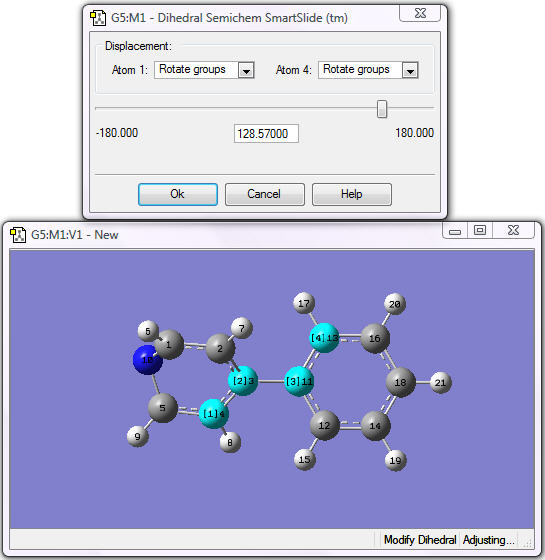 6. Move the slider to create a dihedral until the rings are perpendicular to each other (or enter 90.0 in the text box).